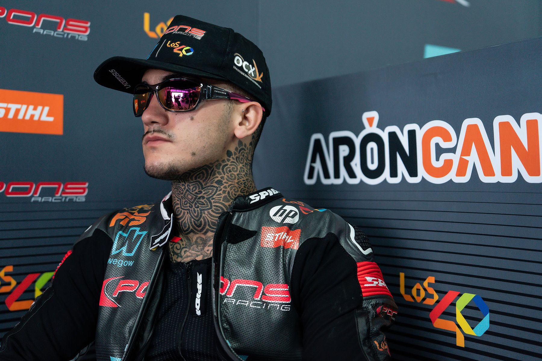 No nos gusta ser agoreros, pero parece que Arón ‘está gafado’. Ayer clasificó mal en la P3 y Q1, no consiguiendo estar en la Q2, hoy ha tenido de arrancar en carrera desde la vigésima posición en la séptima línea de parrilla, consigue hacer una muy buena salida, antes de concluir la primera vuelta ya era décimo, pero por una caída múltiple han sacado bandera roja, los comisarios no han retirado las motos a tiempos y, de nuevo formación de parrilla, nueva salida que ya no ha sido tan buena, no ha ganado posiciones como en la anterior y antes de concluir la primera vuelta ha tenido una caída y aquí se ha acabado la carrera para nuestro piloto. ¿Se puede tener más mala fortuna?