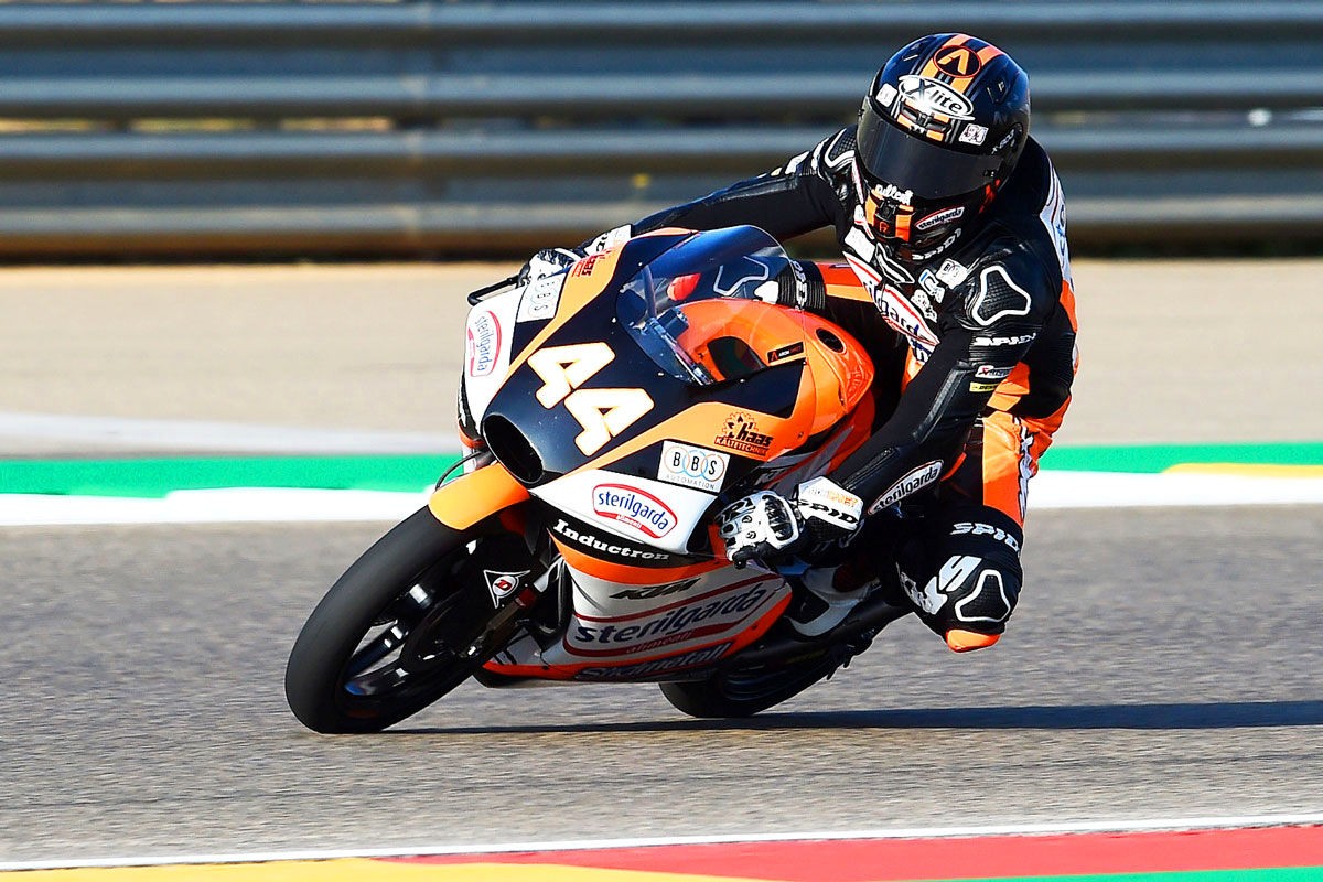 Tras la última carrera de Misano, dónde Arón no tuvo mucha suerte llegamos al circuito de Motorland, para disputar el Gran Premio Michelin de Aragón. Hoy en la primera jornada ha estado en posiciones un poco retrasadas, en la FP1 ha concluido 8º, pero en la FP2 no ha podido mejorar su tiempo de la mañana y ha acabado el día 20º, siendo 16º en la clasificación combinada del día a 1”101 del mejor crono.