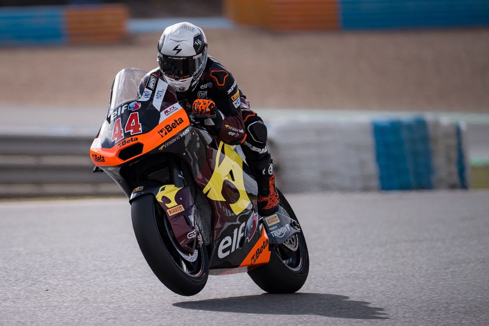 Arón ha estado hoy en el Circuito de Jerez ‘Ángel Nieto’ disfrutando de una jornada de test con su nuevo equipo, el Elf Marc VDS Racing Team del belga Marc van der Straten, y con la que será su nueva moto para las próximas dos temporadas, la Boscoscuro.