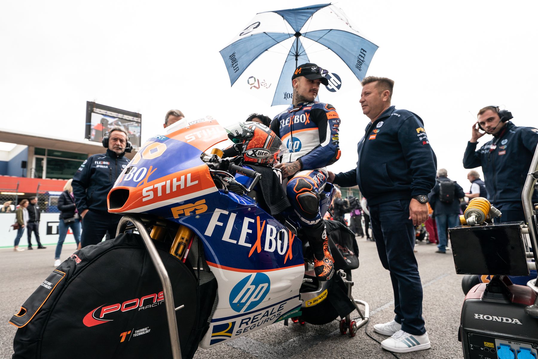 Fin de semana con un brillante trabajo pero con un final amargo. Arón ha sufrido una dura caída en el Autódromo Internacional do Algarve de Portimão cuando lideraba una carrera en la que desde el principio ha estado cayendo gotas de lluvia y Dirección de Carrera no ha decidido pararla, sólo lo ha hecho cuando ya se había producido la montonera de unos 12 pilotos. Verdaderamente absurdo, porque en MotoGP™ cuando ‘mea un gato’ rápidamente paran la carrera.