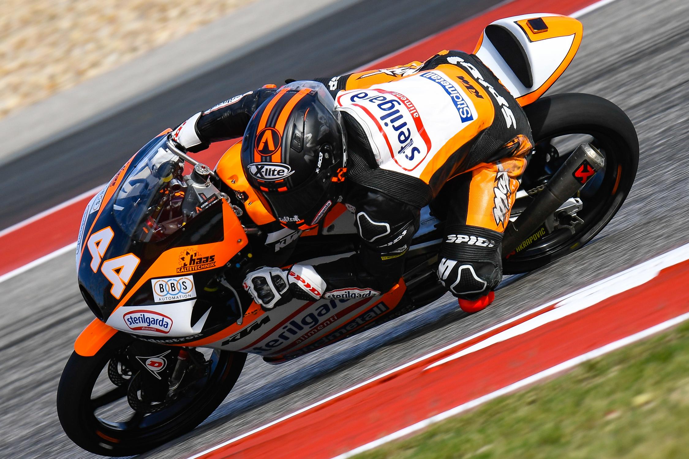 Hoy ha comenzado a disputarse la tercera cita de 2019 para el Mundial de Moto3™, el Red Bull Grand Prix of The Americas. Por la mañana Arón se ha clasificado en la FP1 como 15º, con un crono de 2’20”063 a más de segundo y medio de mejor tiempo de esta primera sesión de entrenamientos libres. Los tiempos ha sido lentos si los comparamos con los registros que Arón tiene en esta pista –mejor vuelta oficiosa: 2’14”644, récord del circuito: 2’15”583– pero es que el asfalto estaba muy sucio. En esta primera sesión, ha dado un total de 11 vueltas obteniendo su mejor crono en su penúltimo giro; además es que se ha ido al suelo pero sin consecuencias.
