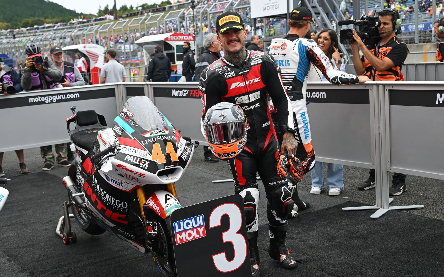 Esta mañana –hora japonesa, madrugada hora peninsular española–, en la P2, Arón ha marcado el mejor tiempo, su crono 1’50”672, pero es que la pista no estaba para muchas florituras, con el asfalto mojado y temperaturas bajas, 19ºC en ambiente y 21ºC sobre el asfalto, pocas cosas más se podía pedir. Nuestro piloto, pese a la llovizna, ha seguido su habitual plan de trabajo en estas sesiones, dos salidas a pista, una primera más larga de nueve vueltas con un mejor crono de 1’58”638, y una segunda, la corta, con sólo tres vueltas y en la que ha establecido su mejor crono, concretamente en la última de las catorce vueltas que ha dado y cuando la pista ya comenzaba a secarse, de ahí el crono relativamente rápido para las circunstancias meteorológicas en las que se ha llevado a cabo esta segunda practice. En los tiempos por sectores, 5º en el T1, 1º en el T2, 2º en el T3 y 1º en el T4.