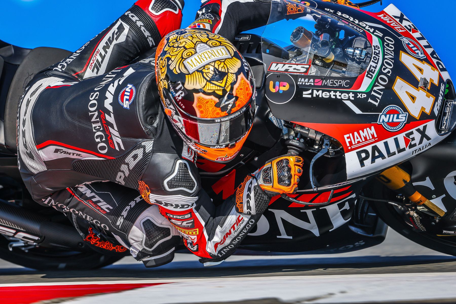 En la Free Practice 2, esta mañana, que se ha celebrado con sol, temperaturas de 20ºC en ambiente, 28ºC sobre el asfalto, viento de unos 7-8 km/h y con una humedad relativa del 70%; Arón ha salido pronto, antes de cumplirse el primer minuto de la sesión, con tal de aprovecharla al máximo y poner a punto la moto en seco de cara a la Q2. En su segunda vuelta ya ha igualado su registro más rápido de ayer en la PR, ha marcado 1’59”909 que le ha situado en el top 5 y tras dar tres vueltas ha retornado al box para hacer algunos ajustes en la moto; ha vuelto a pista cuatro minutos después y situado décimo de la clasificación, pero ha llegado a ser duodécimo. Tras varias vueltas en el 2’00” en su vuelta 7 ha vuelto a bajar en el 1’59”, concretamente 1’59”941 y en el siguiente giro ha marcado 1’59”801 –undécimo en ese momento–; en los siguientes giros ha vuelto a rodar en 2’00” con lo que ha terminado décimo quinto y un poco lejos del mejor registro, a +1”357 tras dar trece vueltas. En los tiempos por sectores, 18º en el T1, 13º en el T2, 14º en el T3 y 20º en el T4.