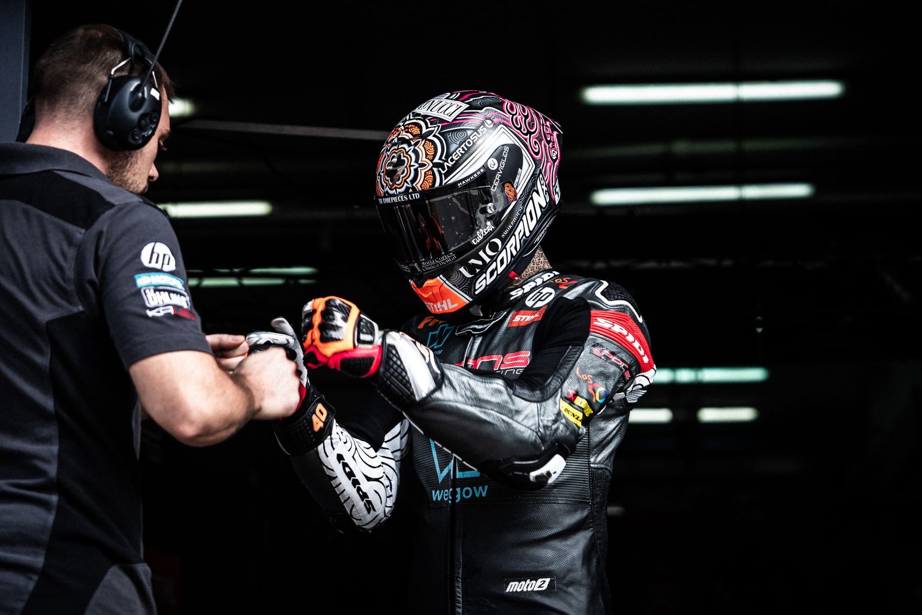 Carrera para olvidar, la arrancada no ha sido mala, sólo ha perdido una posición y en la segunda curva ha tenido de esquivar la caída de otro piloto, pero lo peor ha sido el estar pendiente de tener que cumplir una long lap penalty, que ha realizado en la vuelta 3 y que le ha relegado hasta la décimo cuarta posición, por cierto, la long lap larguísima, ha perdido unos 6” cuando suelen ser, en otros circuitos, unos 3” aproximadamente; tras cumplirla ha estado luchando por la duodécima plaza, pero en el transcurso de la vuelta 6 ha entrado un poco abierto en una curva y se ha ido al suelo y fuera de carrera. Tampoco ha tenido suerte con las caídas de sus rivales, y antes de cumplir la sanción, por dos veces, ha tenido de esquivar dos caídas lo que le ha bajar hasta la octava plaza. Verdaderamente un fin de semana para borrar de la mente, caída en la P1, caída en la Q2 y finalmente también en carrera, lo positivo, afortunadamente sin consecuencias físicas, porque Arón casi siempre que se cae se hace daño.
